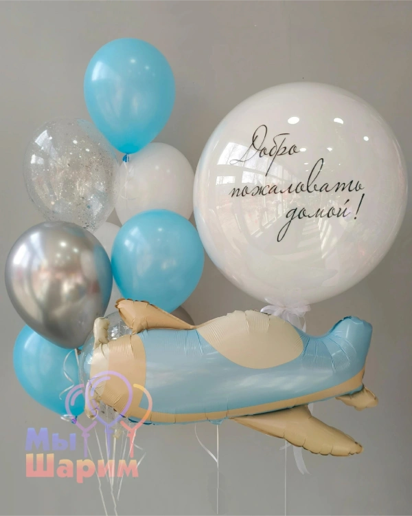 - 1 шар Баблс с перьями и индивидуальной надписью
